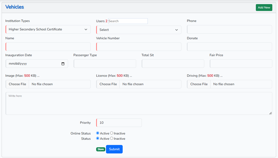 Admin Vehicles