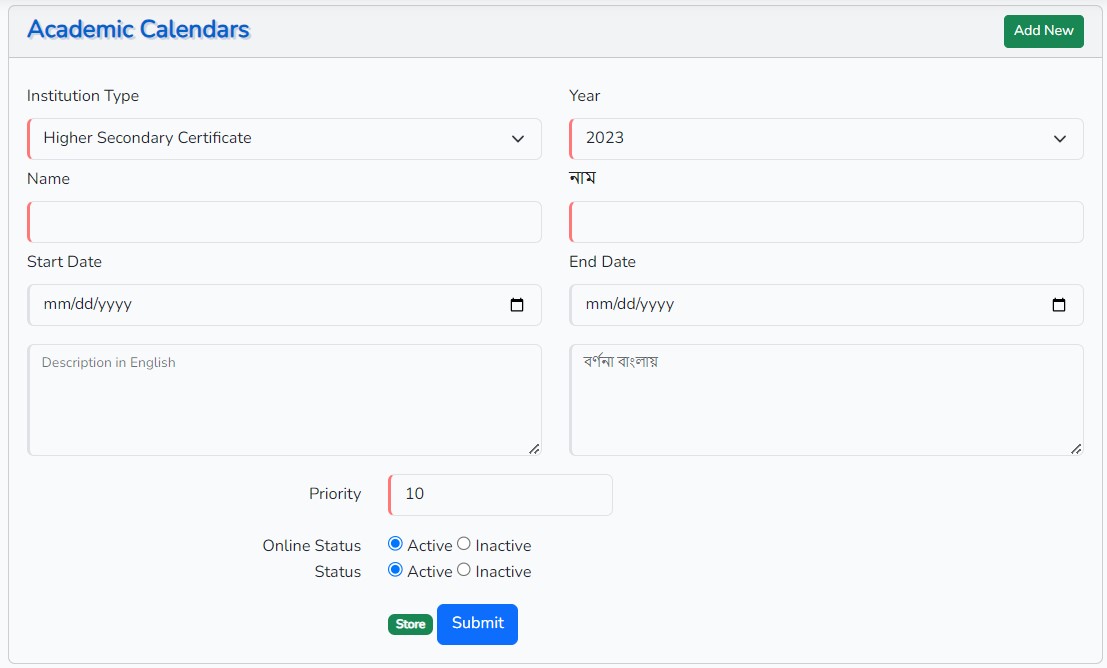 Admin Academics
