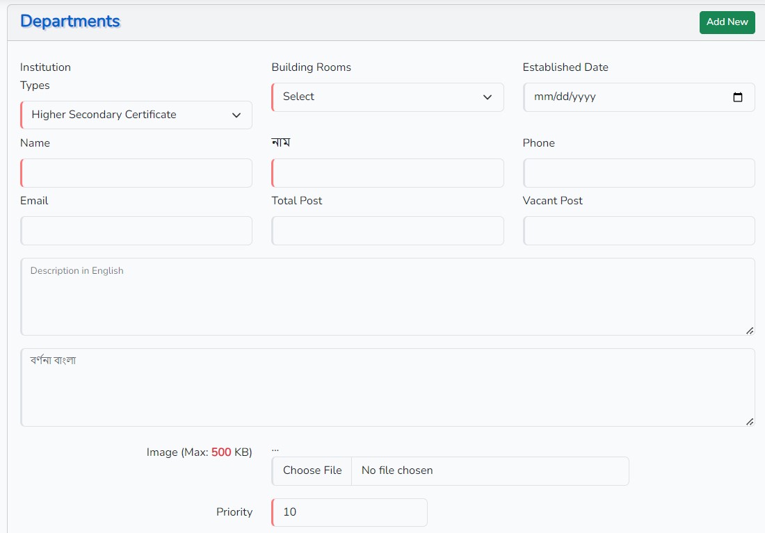 Admin Departments