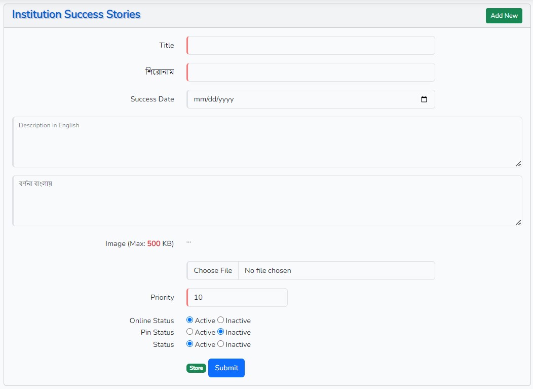 প্রতিষ্ঠানের সফলতার তথ্য যুক্ত করা যাবে।