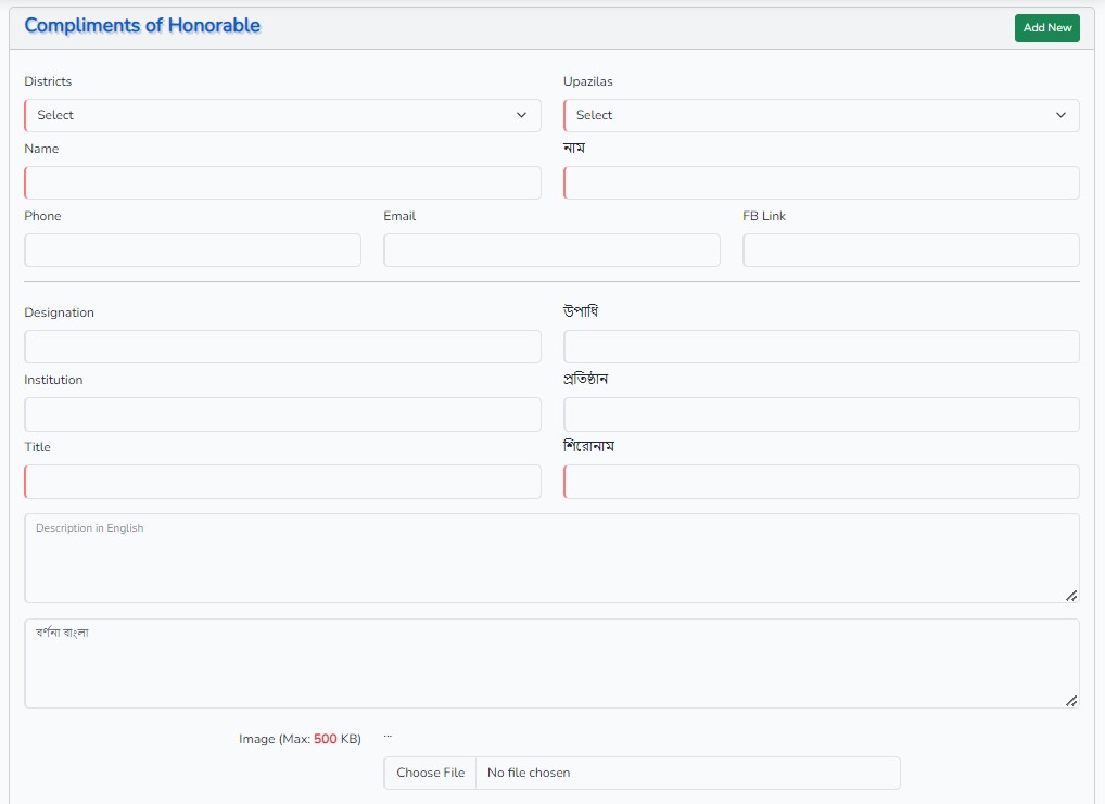 প্রতিষ্ঠান বিষয়ে বিশিষ্ট ব্যক্তি কর্তৃক প্রশংসা বাণী যুক্ত করা যাবে।