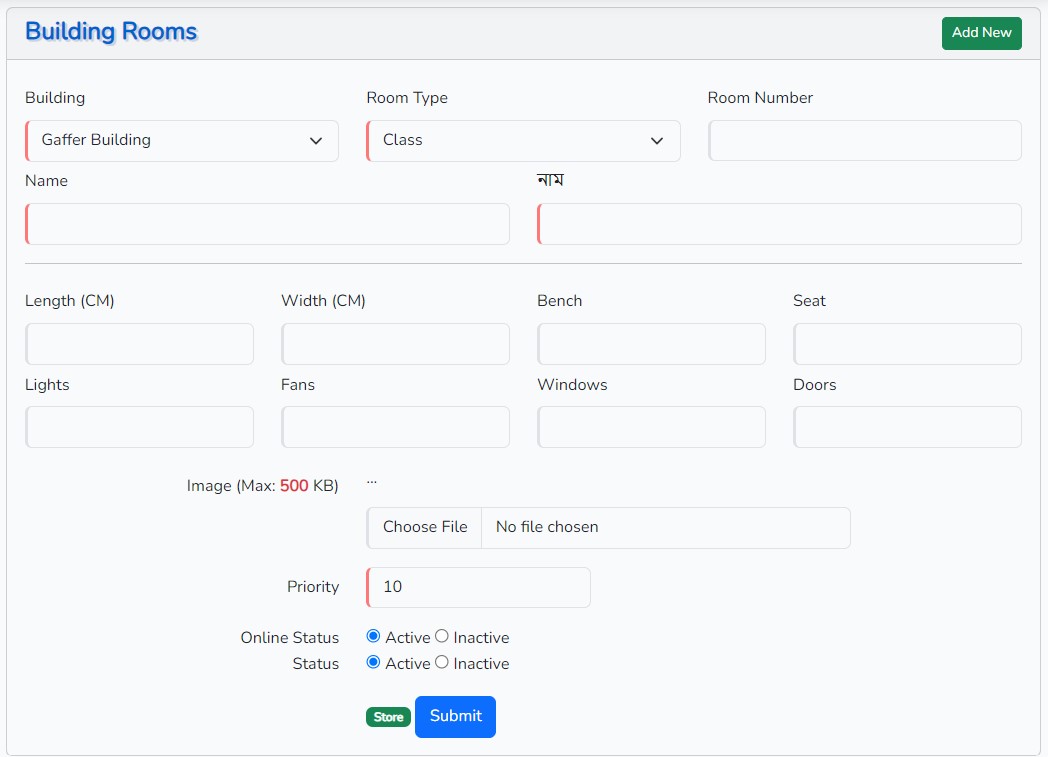 প্রতিষ্ঠানের বিভিন্ন রুমের তথ্য যুক্ত করা যাবে।