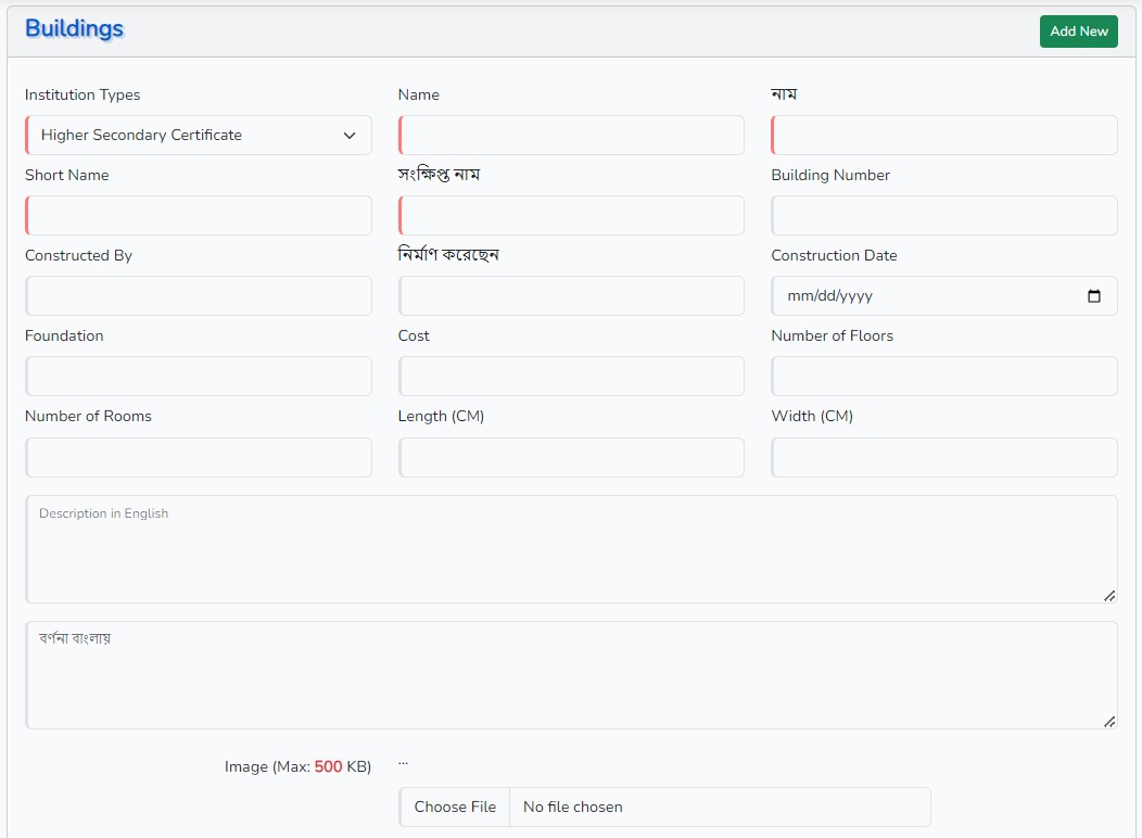 প্রতিষ্ঠানের বিল্ডিংগুলো যুক্ত করা যাবে।