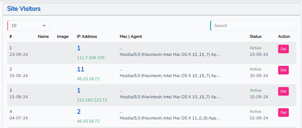 সাইটের ভিজিটরদের তথ্য দেখা যাবে।
