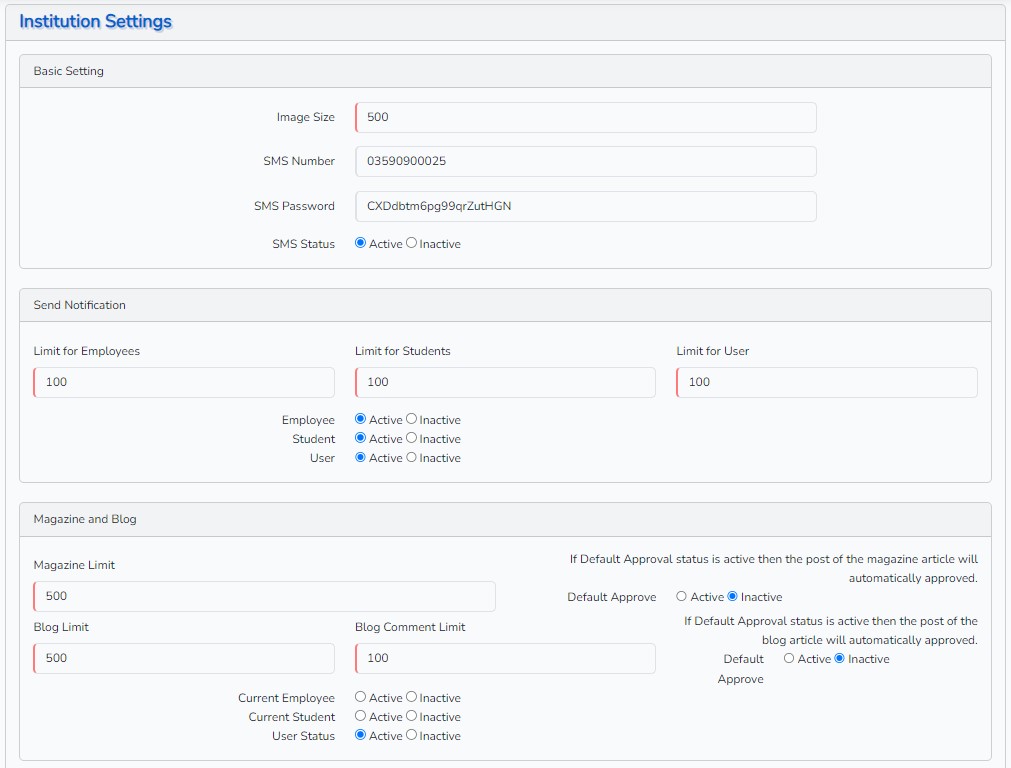 Institution Settings