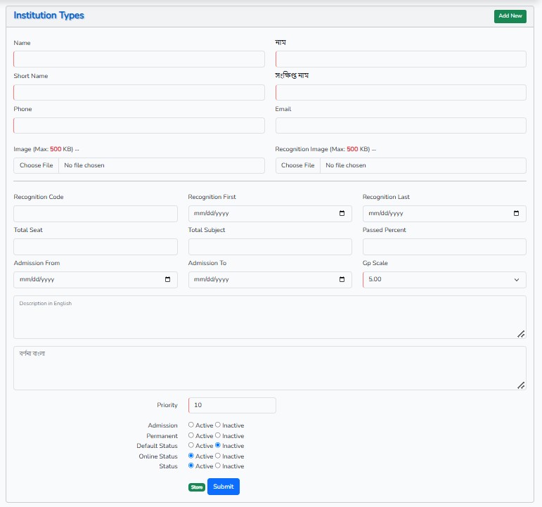 প্রতিষ্ঠানের ধরণগুলো যুক্ত করা যাবে।