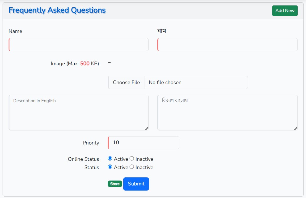 সচরাচর জিজ্ঞাস্যকরা প্রশ্নগুলো যুক্ত করা যাবে।
